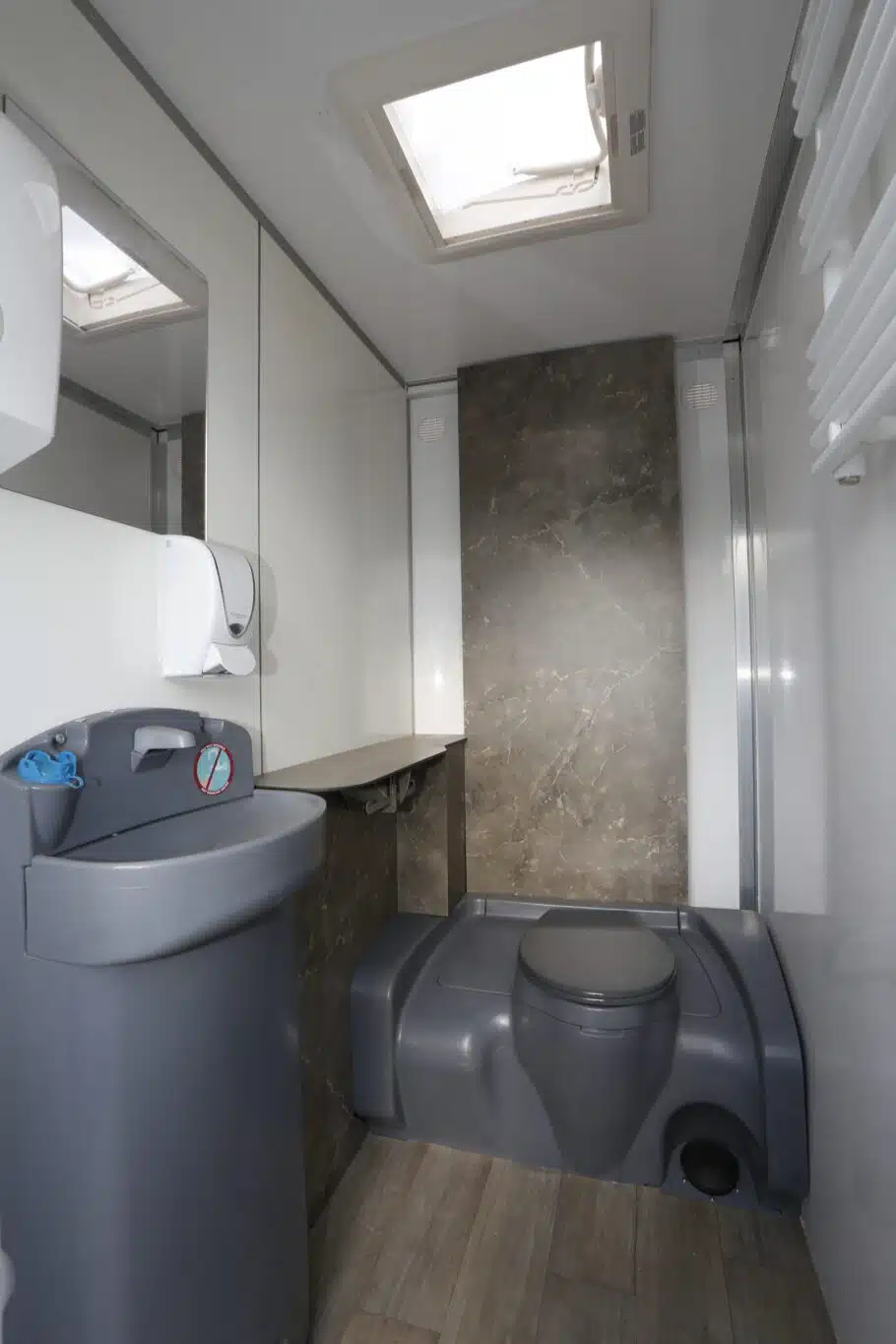 The technology of our equipment also adapts to your site’s constraints ! The most sophisticated events will favour clear-water flush systems, particularly vacuum toilets, which reduce water consumption by up to 90% compared to traditional toilets. This technology also has the advantage of being able to operate in a closed-loop, fully autonomous system, when no water or sanitation networks are available on site.