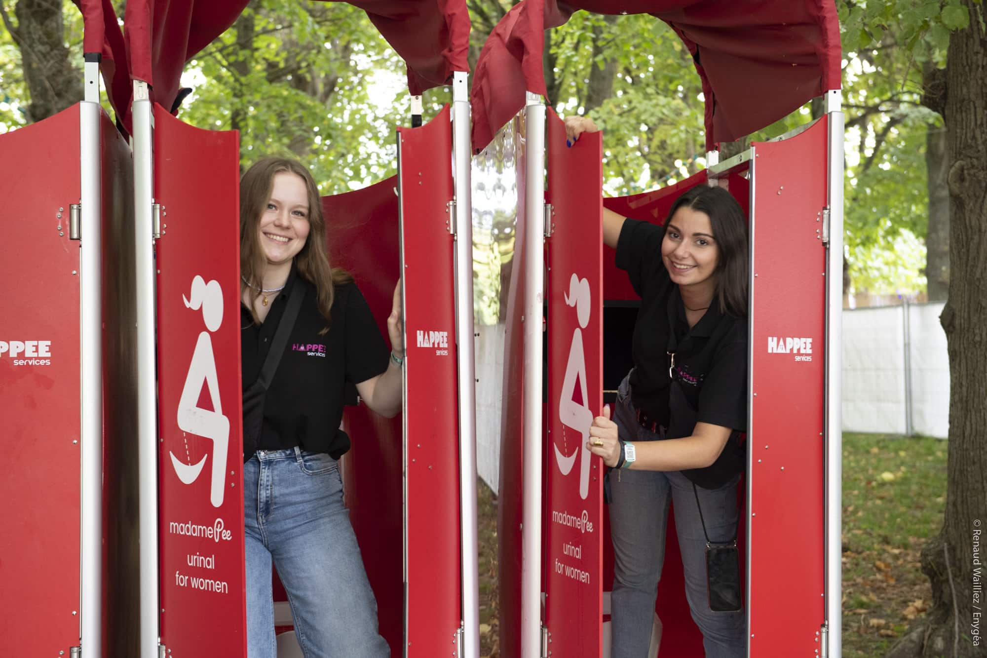 Pratiques, peu encombrants, rapides et tous publics, les urinoirs mobiles réduisent le temps d'attente par 6 ! Et nos urinoirs n'ont pas oublié les femmes, grâce à nos célèbres urinoirEs fémininEs madamePEE et nos urinoirs LAPEE ! Les urinoirs pour femmes madamePee et Lapee ont été conçues et imaginées par des femmes pour des femmes. L’objectif est simple : proposer un matériel sanitaire permettant de limiter le temps d’attente des utilisatrices tout en préservant leur intimité.
