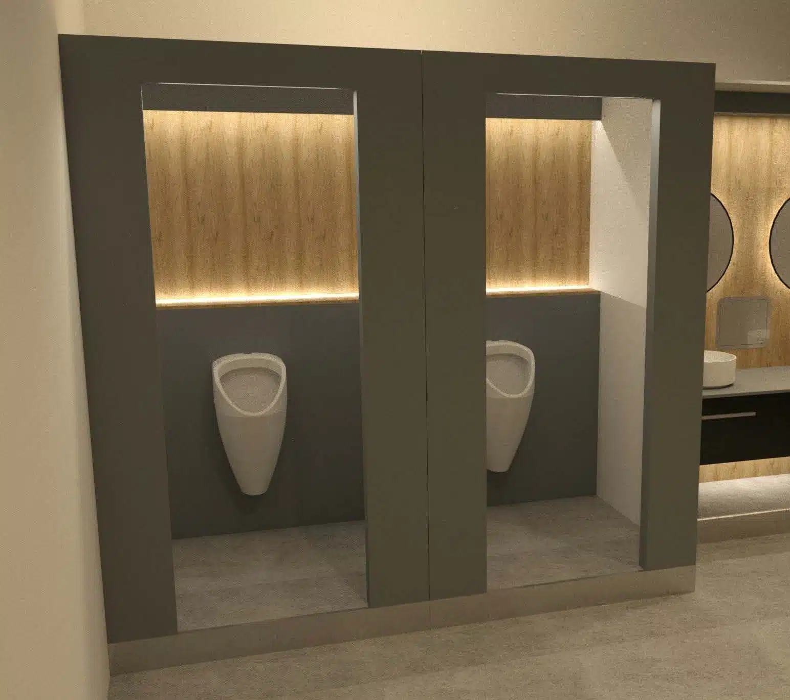 - Cabine sanitaire flexible : Modulez votre zone sanitaire selon vos souhaits : PMR, urinoirs, toilettes classiques et duo de lave-mains.