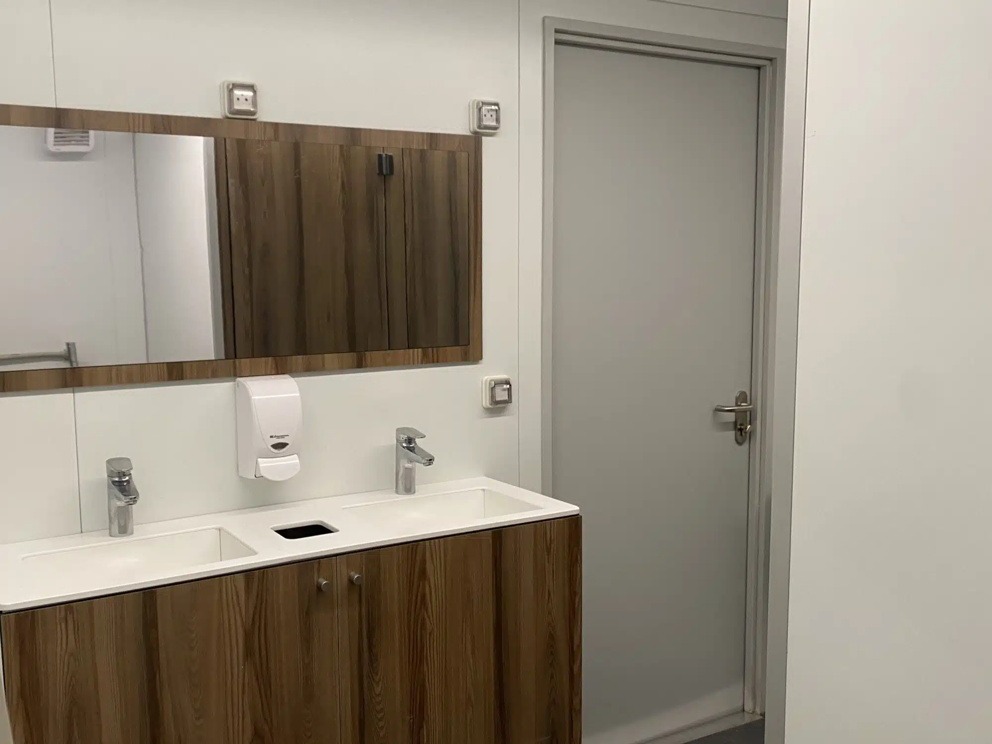 Chauffé et isolé, il est composé d’un espace lavabos avec 2 double vasques et d’un espace de 6 douches.