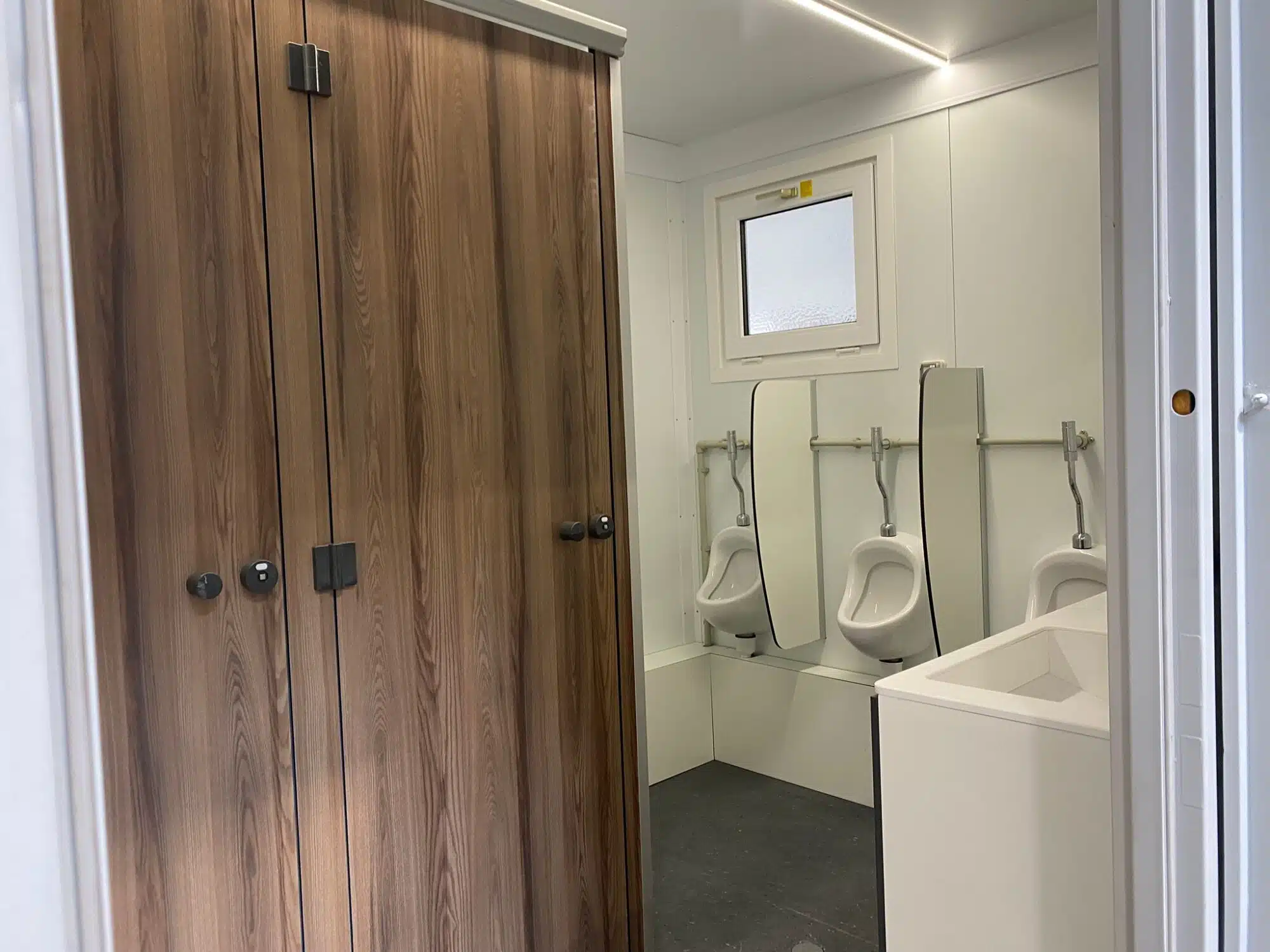 Ce module chauffé et isolé est composé d’1 espace femme avec 4 WC – 2 lavabos, et 1 espace homme avec 2 WC – 4 urinoirs – 2 lavabos.