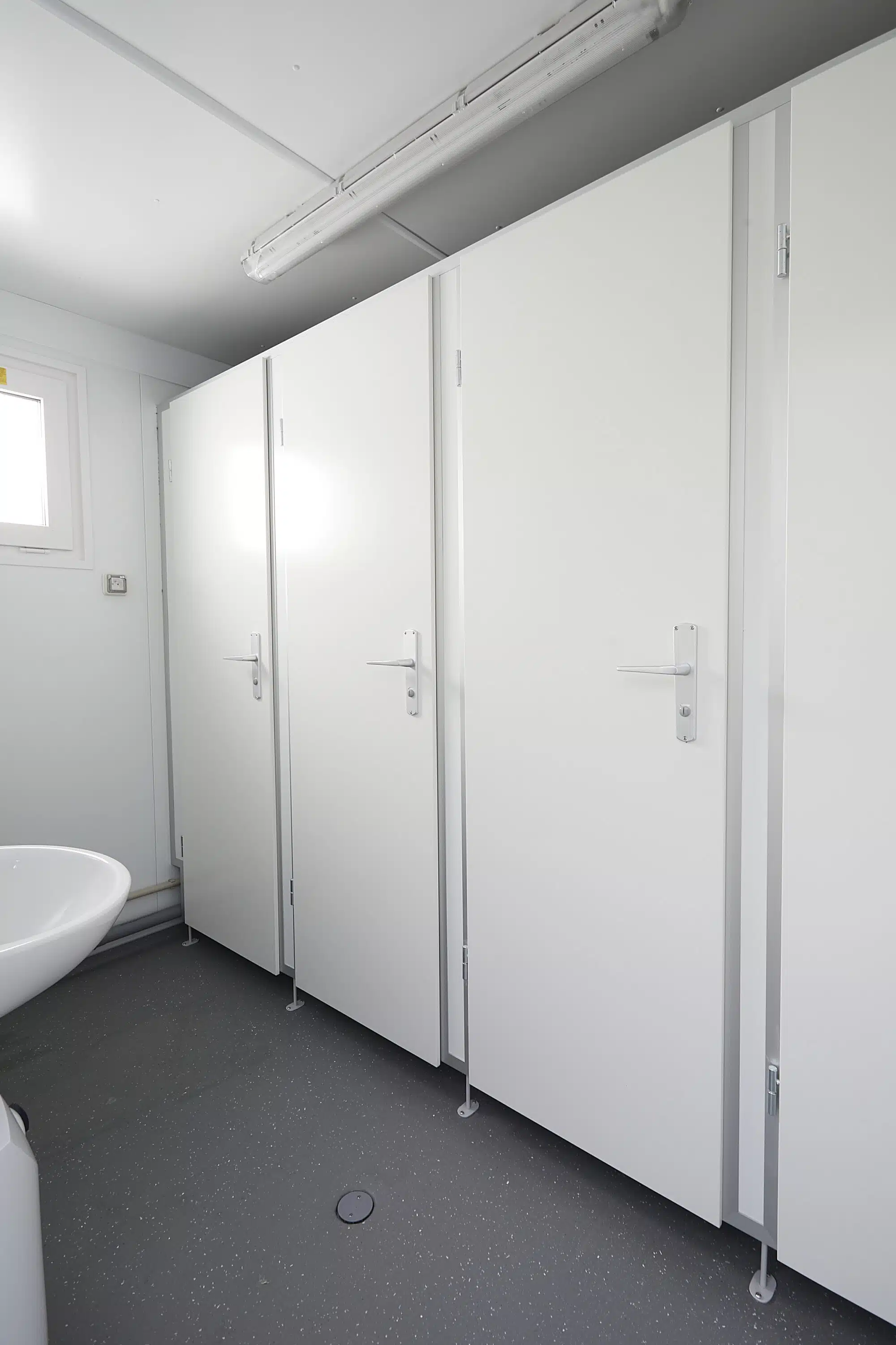 Ce module de 10 postes sanitaires (6 WC et 4 urinoirs) permet de créer des zones sanitaires repérables et sans attente. - Confort :