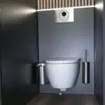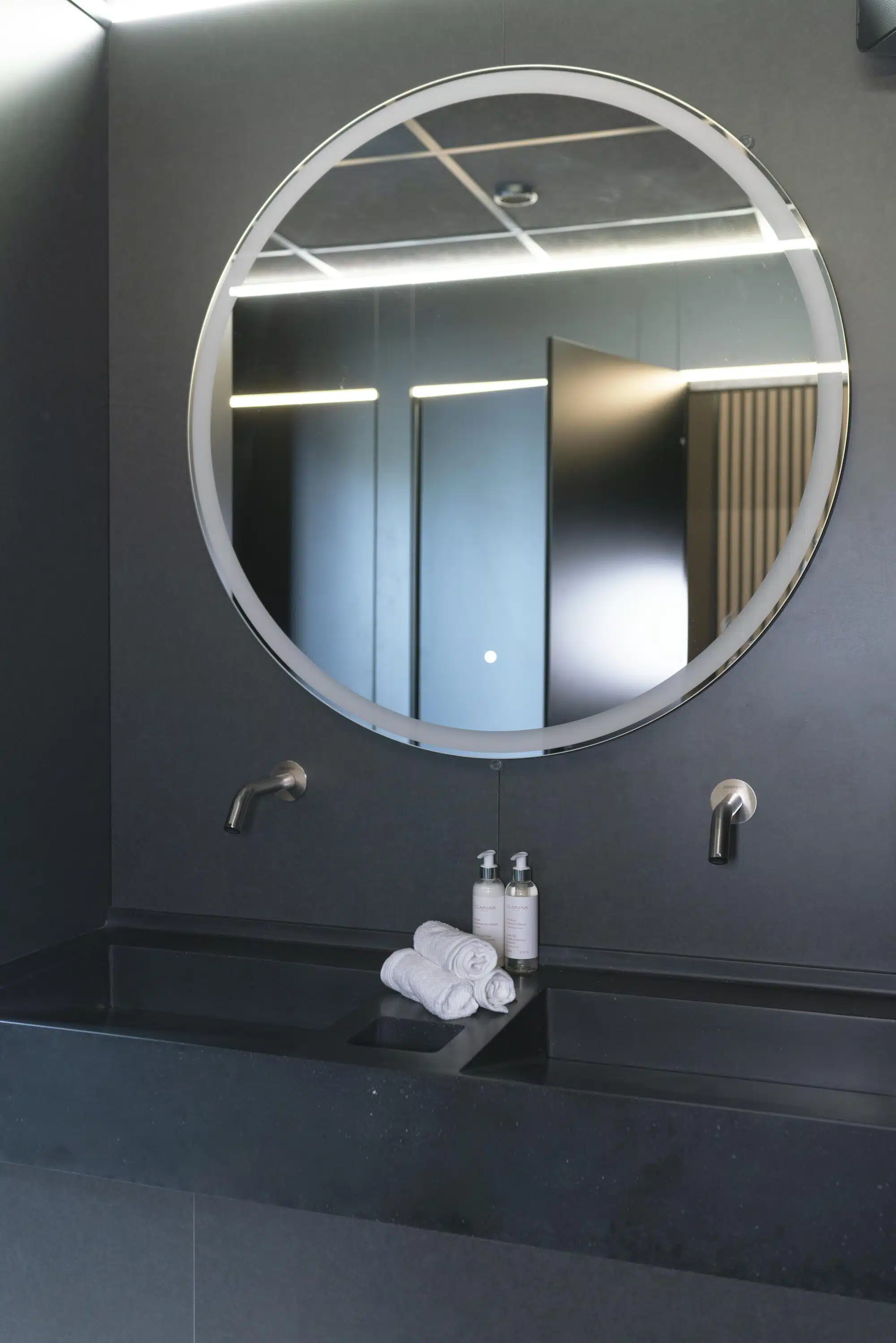 Sa finition moderne, ses matériaux qualitatifs ainsi que ses équipements fonctionnels (miroir, enceinte, porte d’entrée automatique) sauront séduire vos utilisateurs et utilisatrices les plus exigeants.