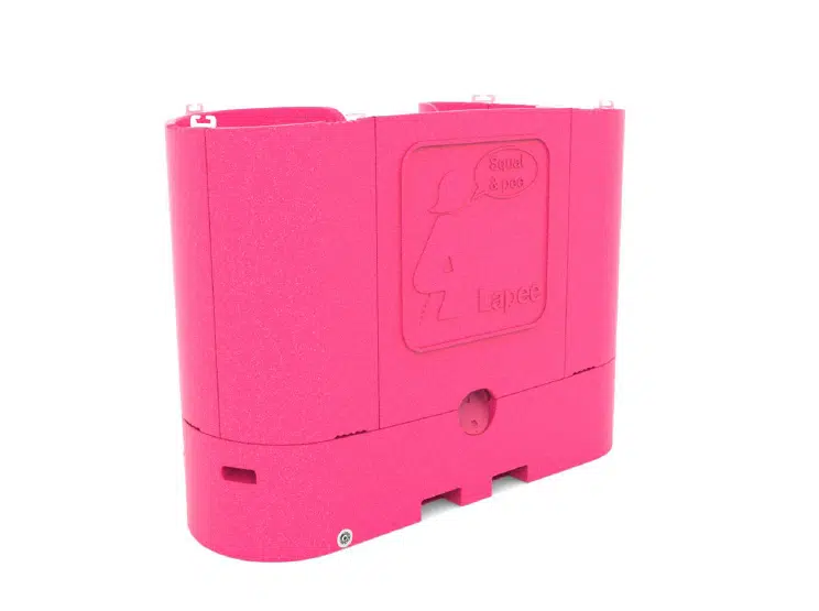 - Design : Lapee est rose et facile à repérer. Il peut accueillir deux utilisatrices à la fois. Les murs incurvés offrent intimité et protection sans jamais se sentir enfermées.